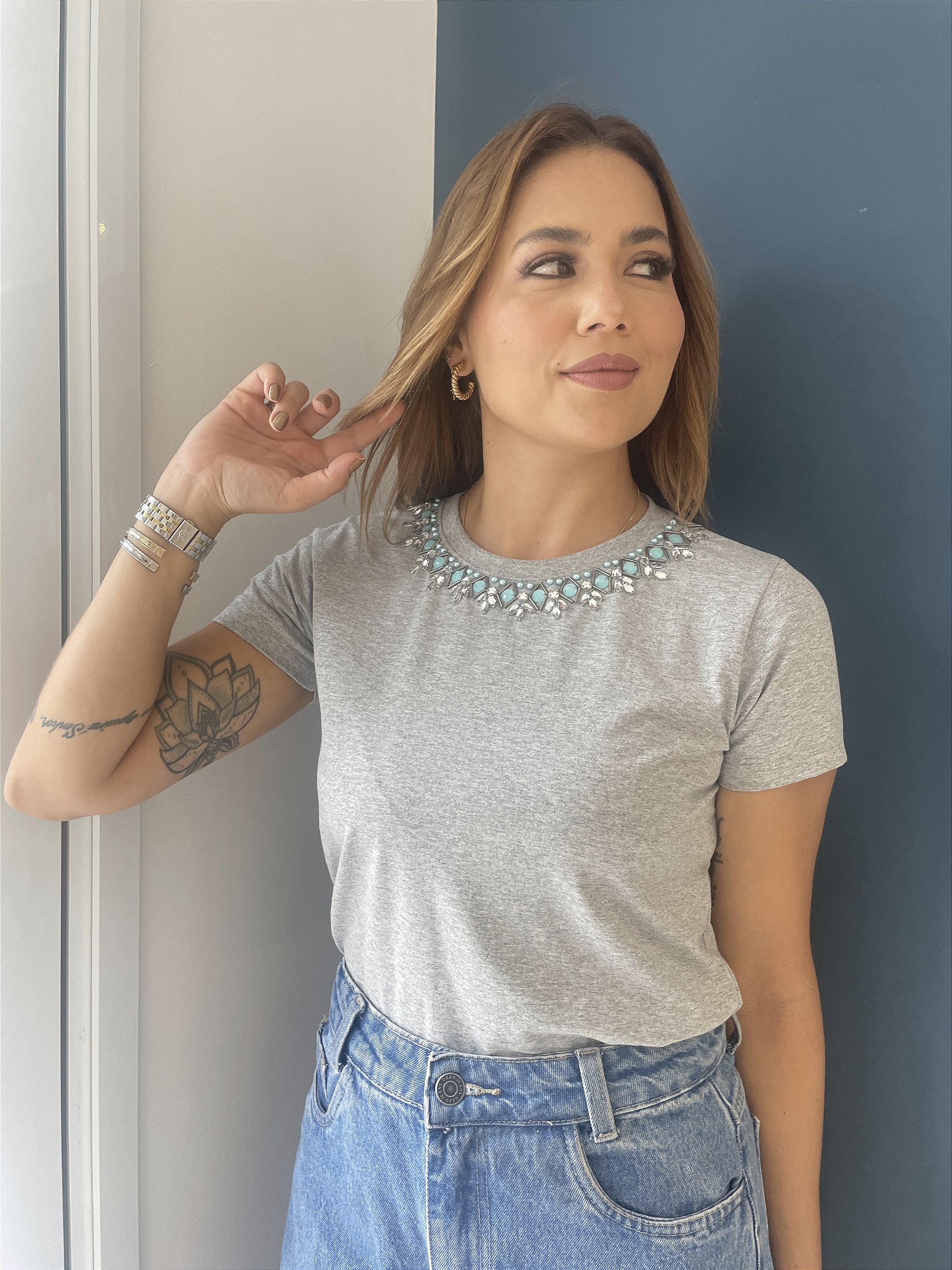 Baby Look Algodão Cinza Mescla Thayla