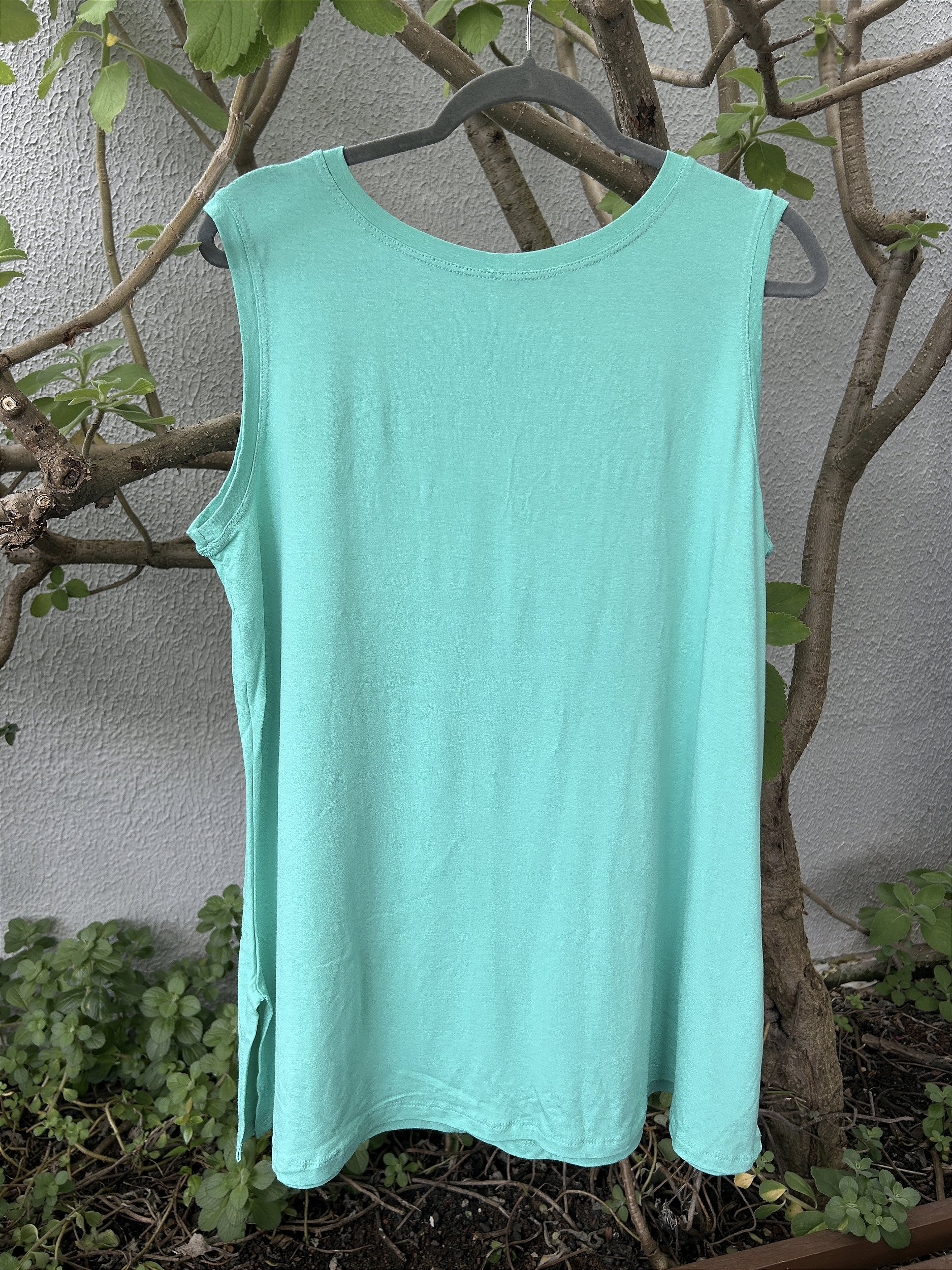 Regatão amplo, com fendas nas laterais, alça larga trazendo conforte e elegância em cada detalhe.