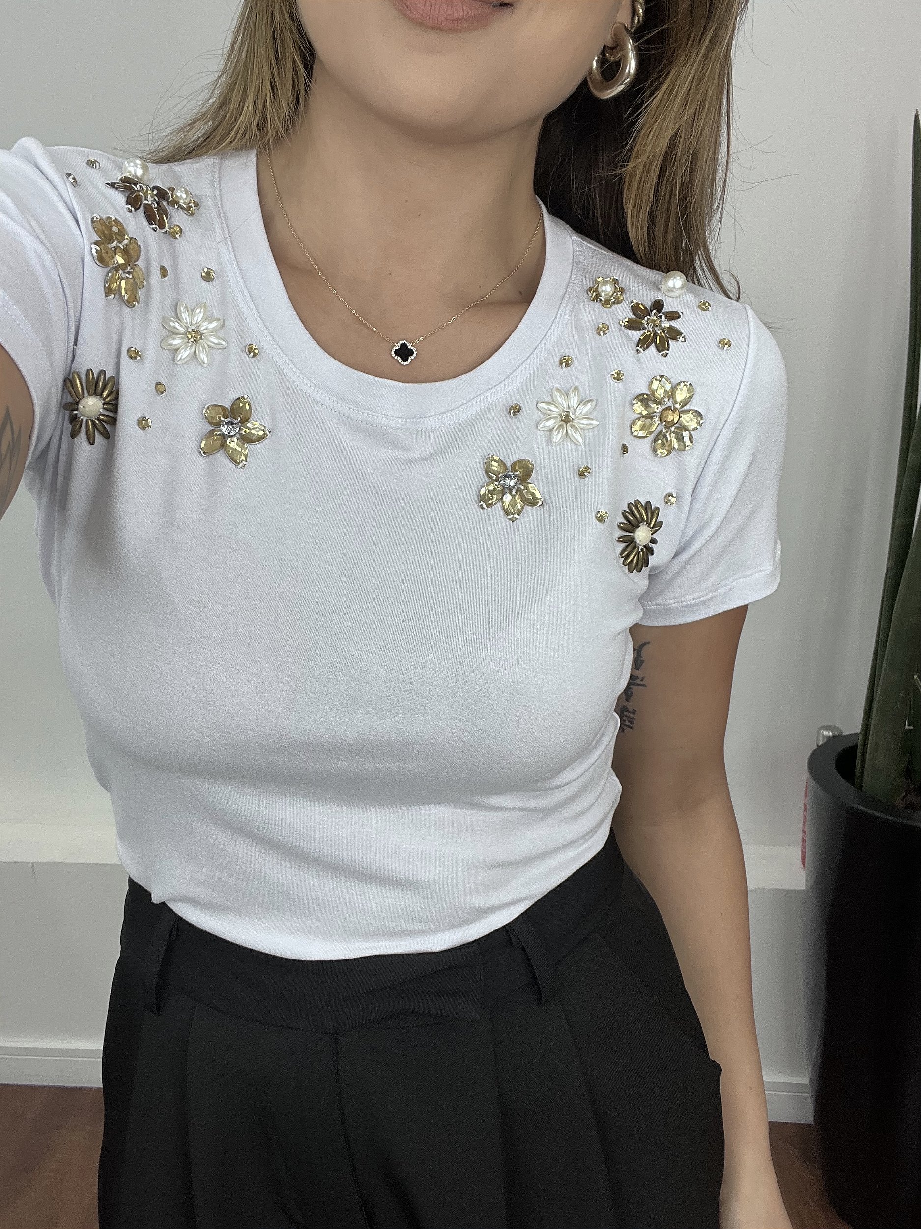 Tshirt Feminina Decote Redondo Branca Stella