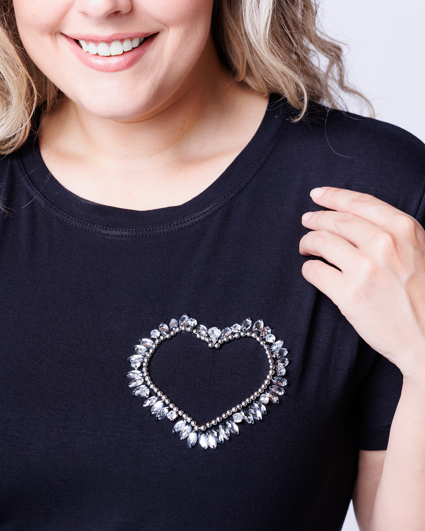 Tshirt Feminina Decote Redondo Preta Coração