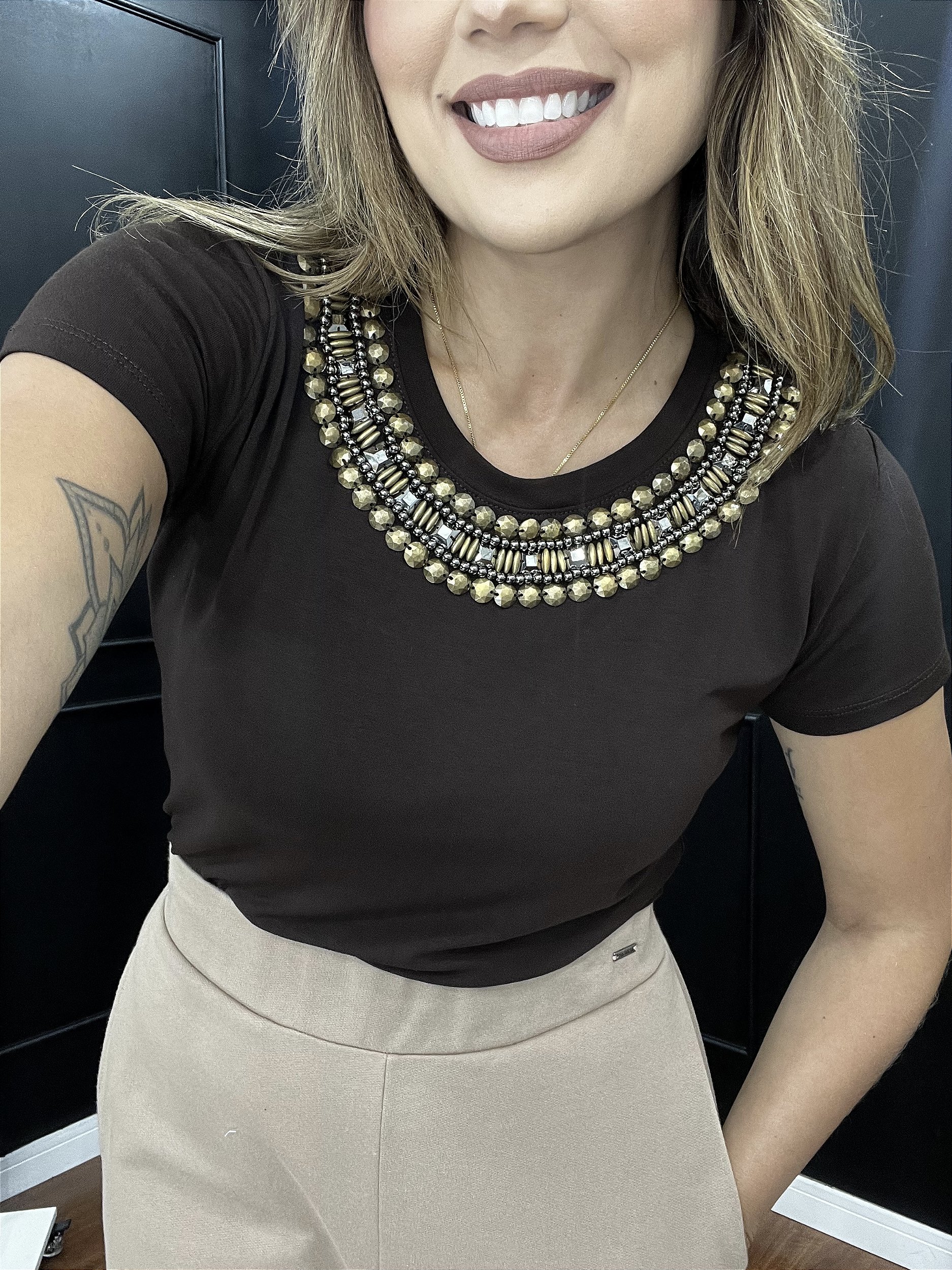 Tshirt Feminina Decote Redondo Tammy Marrom